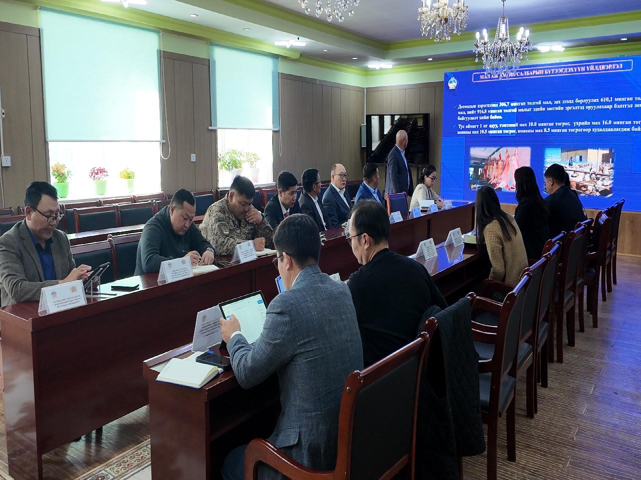 Ажлын хэсэг Засгийн газрын Хөдөө аж ахуйн салбарын 2025-2026 оны өвөлжилт, хаваржилтын бэлтгэл хангах зарим арга хэмжээний тухай 56 дугаар тогтоолын хэрэгжилттэй танилцаж, 2025.09.18-ны өдөр Говь-Алтай аймгийн Онцгой комисстой хамтарсан хуралдаан хийлээ.